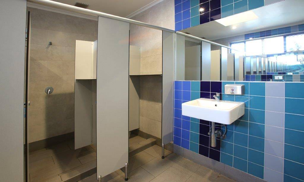 • Modern functional male and female bathroom amenities.
