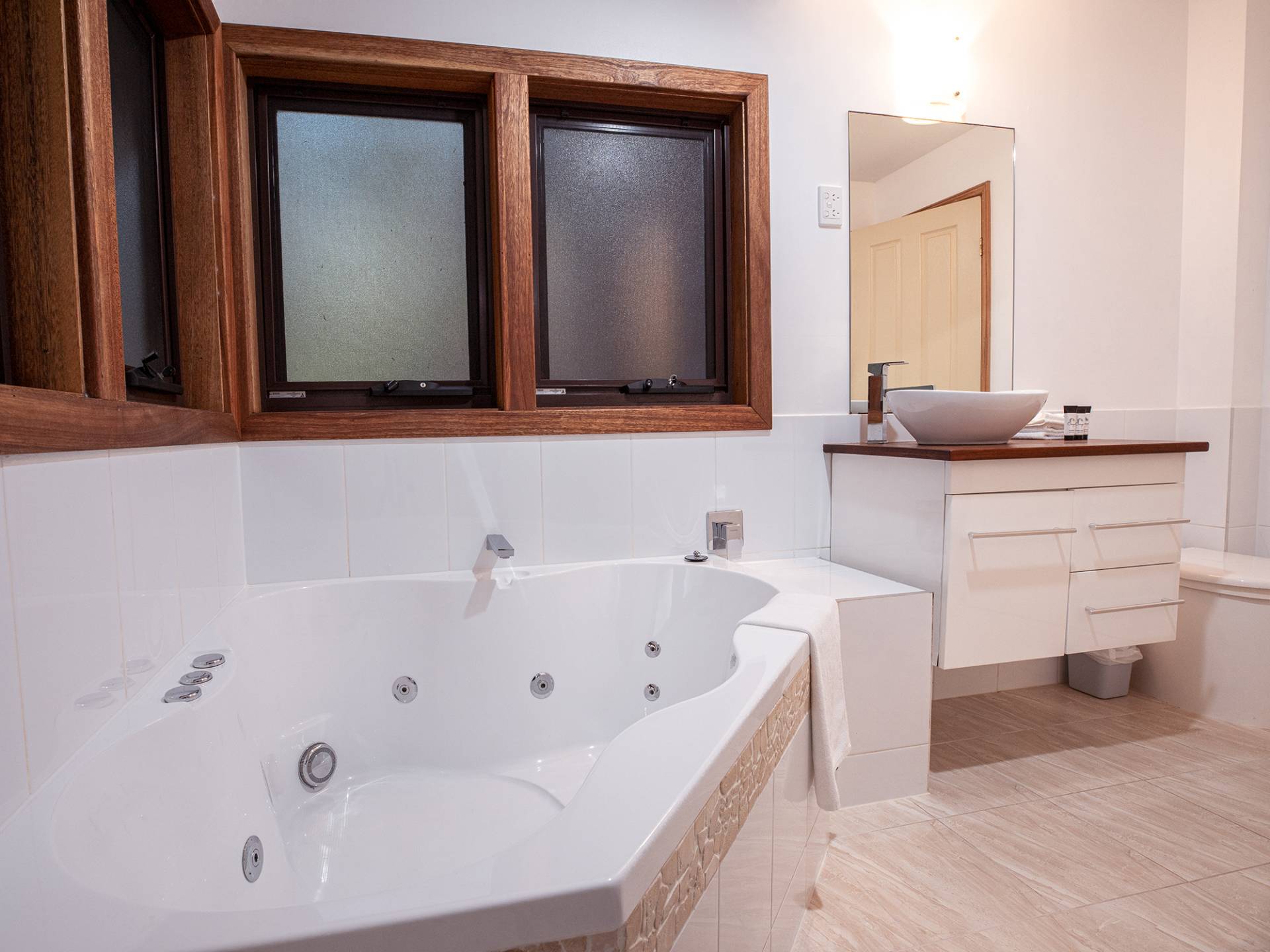 • Seven cottages include double spa baths.