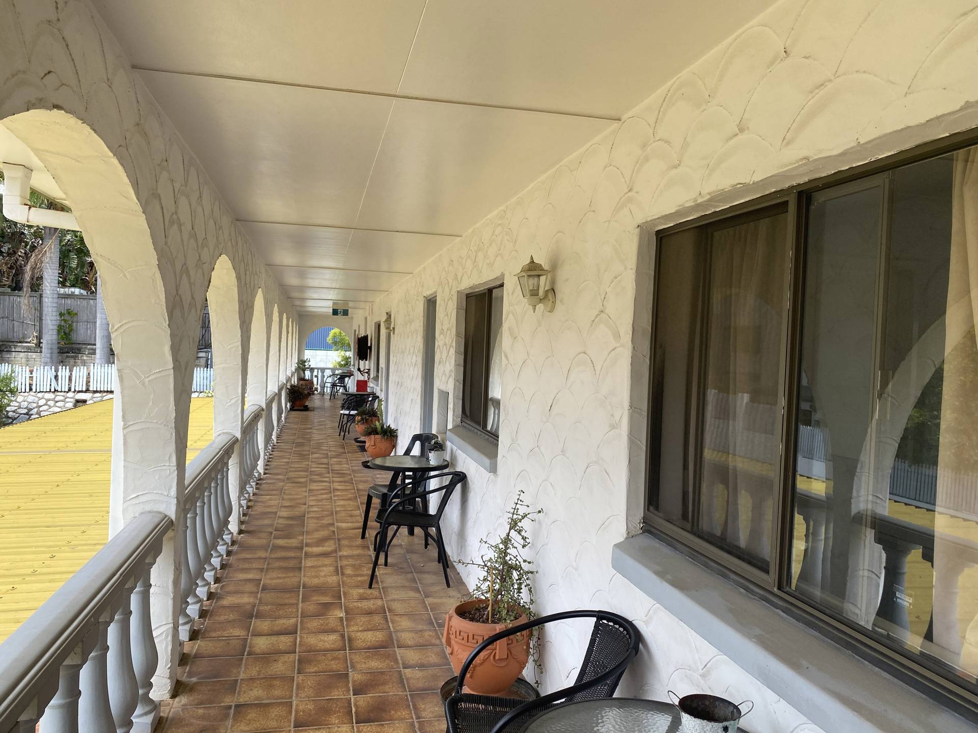 This motel is well located in one of the main arterial roads with high visibility to all traffic in and around the Gladstone city area. Single entrance provides security for guests, there is undercover parking for all guests,  inground pool and outdoor seating in front of units.